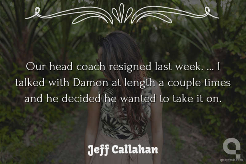 Our head coach resigned last week. ... I talked with Damon at length a couple times and he decided he wanted to take it on.