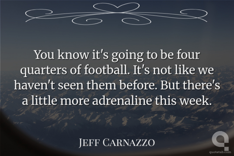 You know it's going to be four quarters of football. It's not like we haven't seen them before. But there's a little more adrenaline this week.