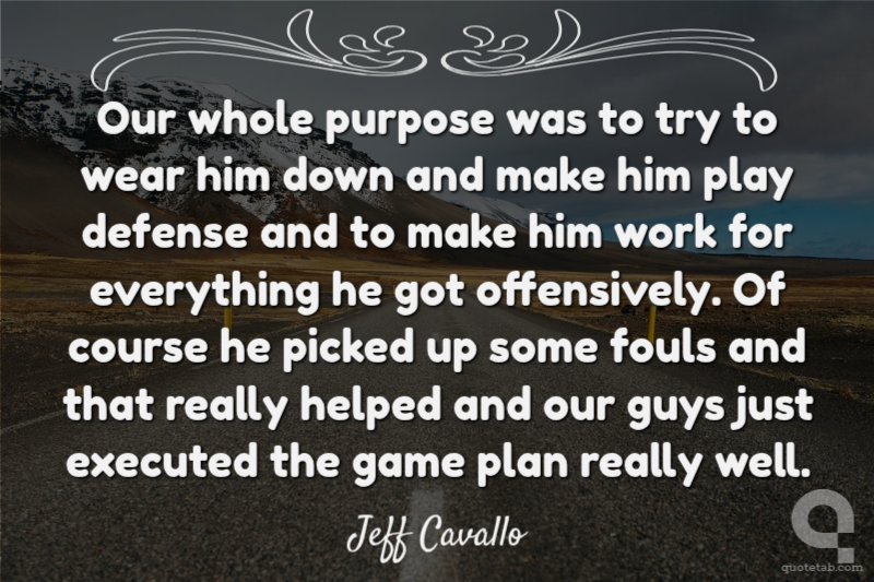 Our whole purpose was to try to wear him down and make him play defense and to make him work for everything he got offensively. Of course he picked up some fouls and that really helped and our guys just executed the game plan really well.