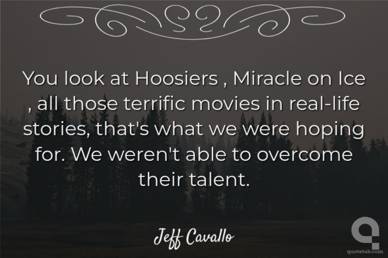 You look at Hoosiers , Miracle on Ice , all those terrific movies in real-life stories, that's what we were hoping for. We weren't able to overcome their talent.
