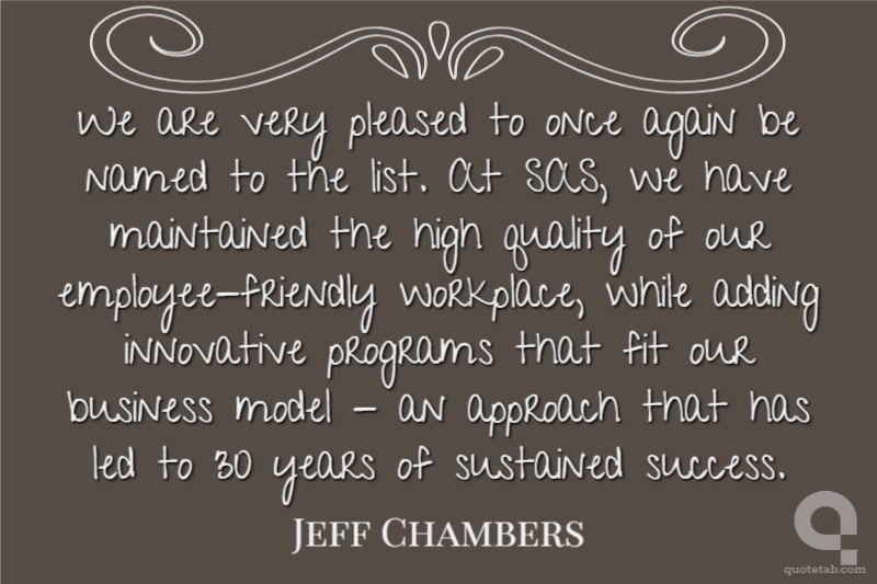 We are very pleased to once again be named to the list. At SAS, we have maintained the high quality of our employee-friendly workplace, while adding innovative programs that fit our business model - an approach that has led to 30 years of sustained success.