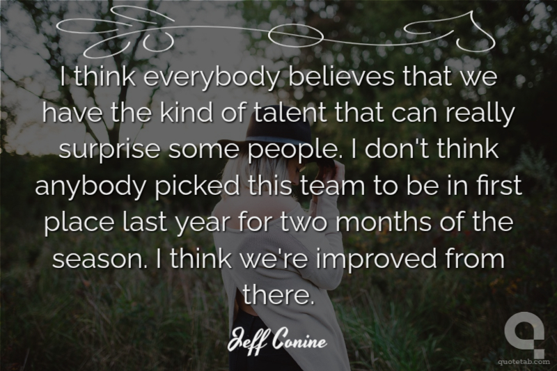 I think everybody believes that we have the kind of talent that can really surprise some people. I don't think anybody picked this team to be in first place last year for two months of the season. I think we're improved from there.