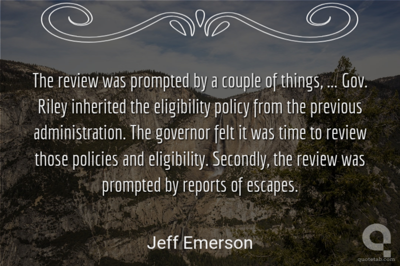 The review was prompted by a couple of things, ... Gov. Riley inherited the eligibility policy from the previous administration. The governor felt it was time to review those policies and eligibility. Secondly, the review was prompted by reports of escapes.