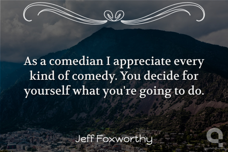 As a comedian I appreciate every kind of comedy. You decide for yourself what you're going to do.