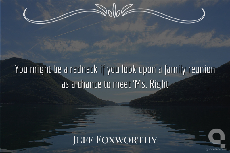 Jeffrey Marshall "Jeff" Foxworthyis an American stand-up comedian, actor, television and radio personality, author, and voice artist. He is a member of the Blue Collar Comedy Tour, a comedy troupe which also comprises Larry the Cable Guy, Bill Engvall, and Ron White. Known for his "You might be a redneck" one-liners, Foxworthy has released six major-label comedy albums. His first two albums were each certified 3× Platinum by the Recording Industry Association of America. Foxworthy has written several books based...