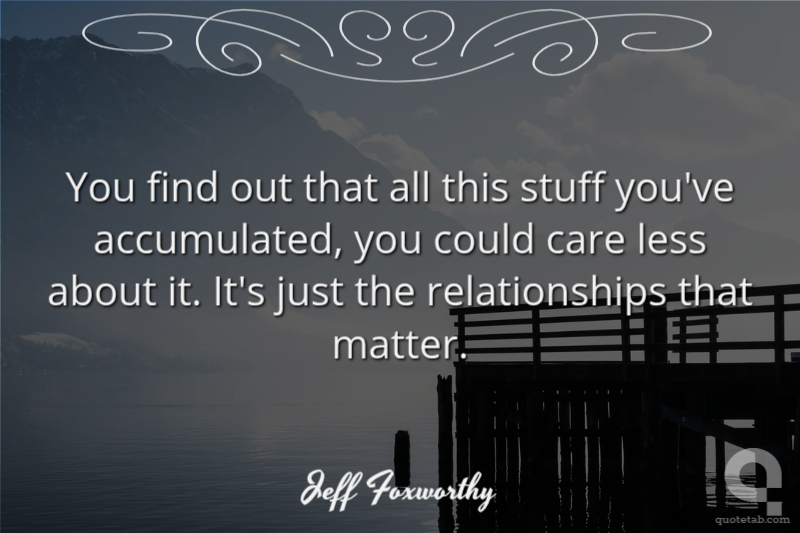 You find out that all this stuff you've accumulated, you could care less about it. It's just the relationships that matter.