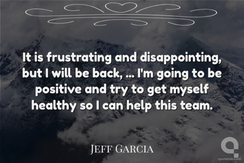 It is frustrating and disappointing, but I will be back, ... I'm going to be positive and try to get myself healthy so I can help this team.