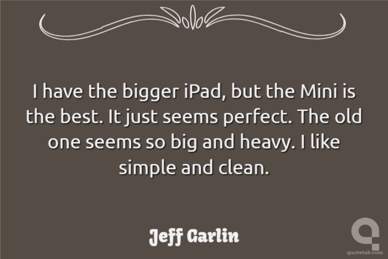 I have the bigger iPad, but the Mini is the best. It just seems perfect. The old one seems so big and heavy. I like simple and clean.