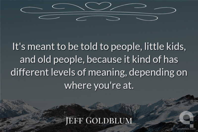 It's meant to be told to people, little kids, and old people, because it kind of has different levels of meaning, depending on where you're at.