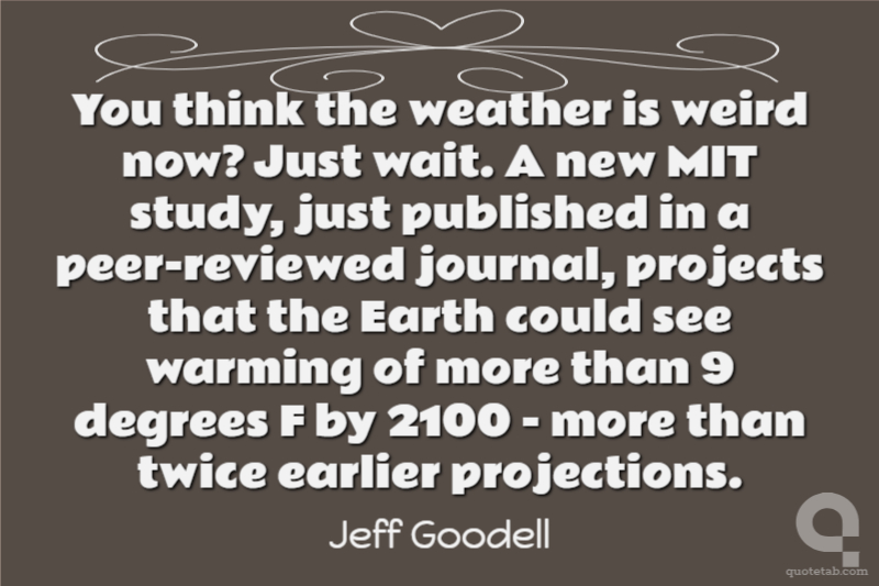 You think the weather is weird now? Just wait. A new MIT study, just published in a peer-reviewed journal, projects that the Earth could see warming of more than 9 degrees F by 2100 - more than twice earlier projections.