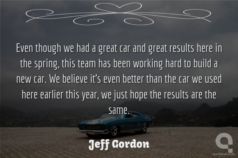 Even though we had a great car and great results here in the spring, this team has been working hard to build a new car. We believe it's even better than the car we used here earlier this year, we just hope the results are the same.