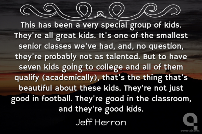 This has been a very special group of kids. They're all great kids. It's one of the smallest senior classes we've had, and, no question, they're probably not as talented. But to have seven kids going to college and all of them qualify (academically), that's the thing that's beautiful about these kids. They're not just good in football. They're good in the classroom, and they're good kids.