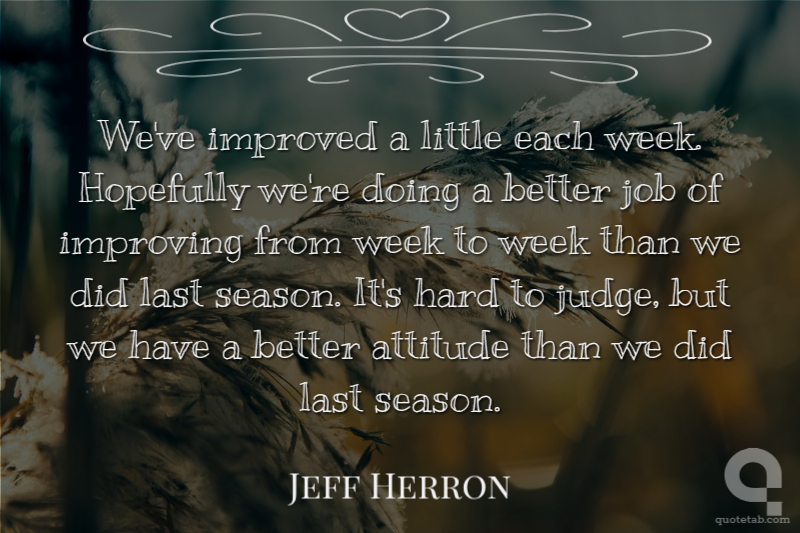 We've improved a little each week. Hopefully we're doing a better job of improving from week to week than we did last season. It's hard to judge, but we have a better attitude than we did last season.