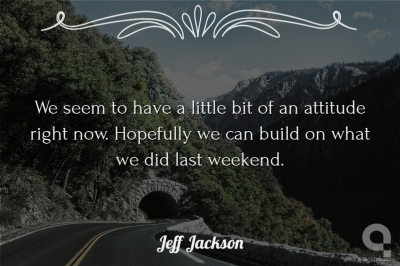 We seem to have a little bit of an attitude right now. Hopefully we can build on what we did last weekend.