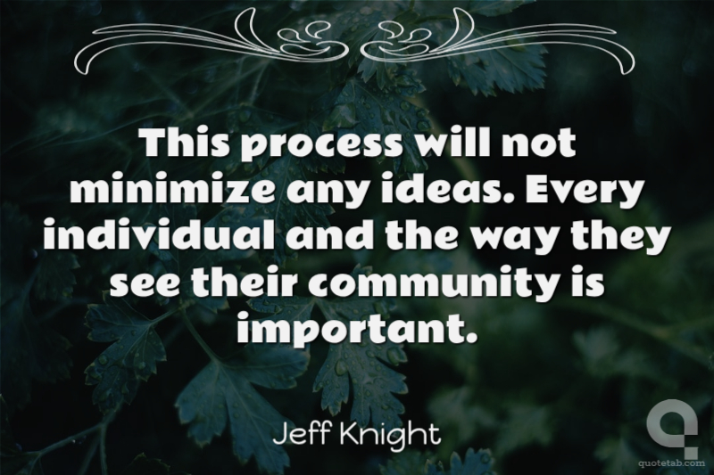 This process will not minimize any ideas. Every individual and the way they see their community is important.