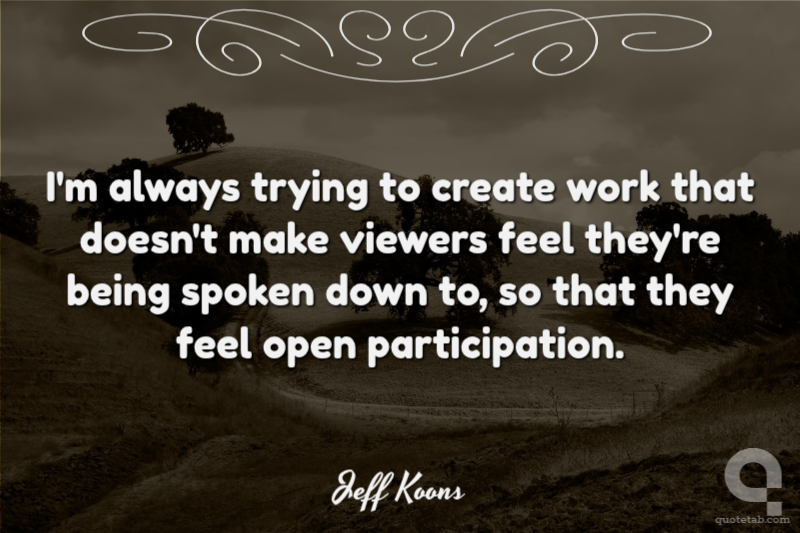I'm always trying to create work that doesn't make viewers feel they're being spoken down to, so that they feel open participation.