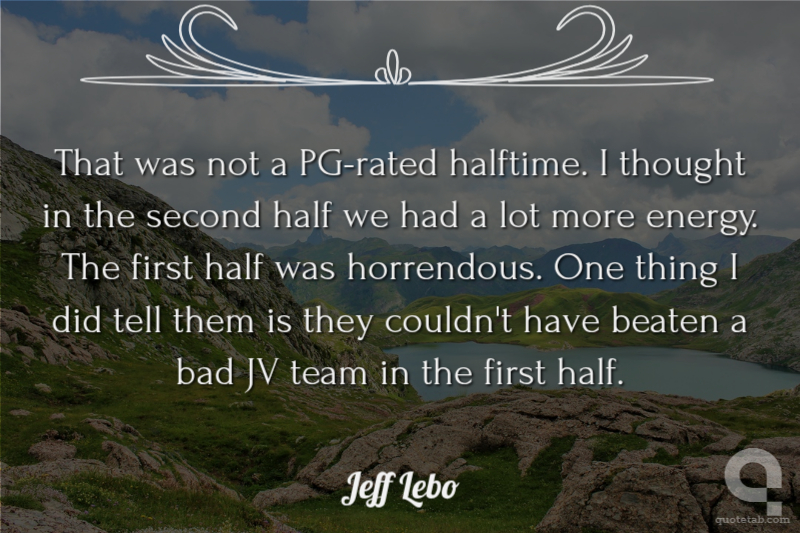 That was not a PG-rated halftime. I thought in the second half we had a lot more energy. The first half was horrendous. One thing I did tell them is they couldn't have beaten a bad JV team in the first half.
