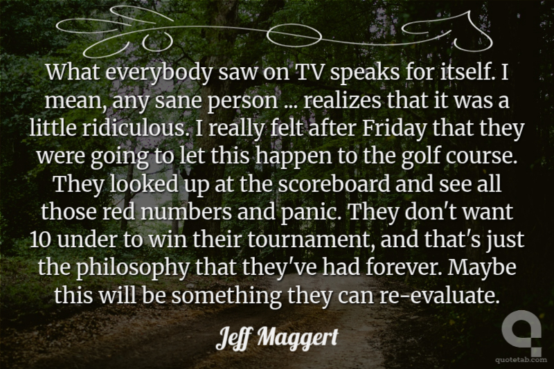 What everybody saw on TV speaks for itself. I mean, any sane person ... realizes that it was a little ridiculous. I really felt after Friday that they were going to let this happen to the golf course. They looked up at the scoreboard and see all those red numbers and panic. They don't want 10 under to win their tournament, and that's just the philosophy that they've had forever. Maybe this will be something they can re-evaluate.