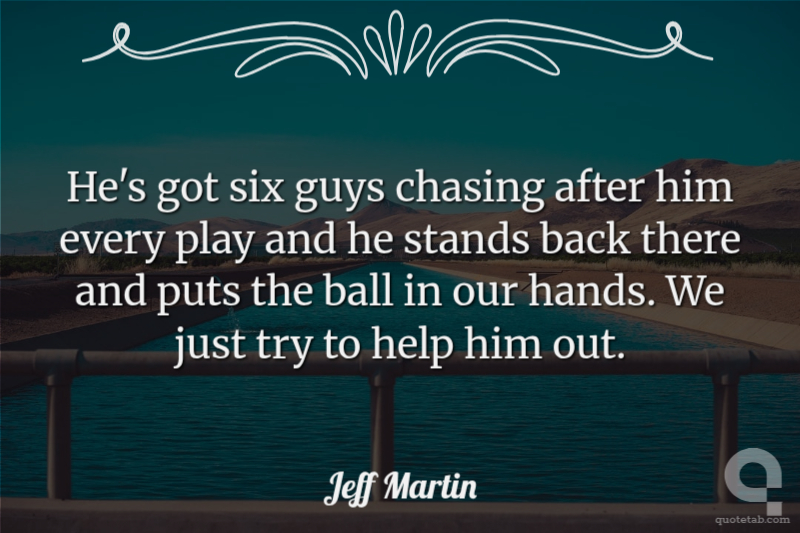 He's got six guys chasing after him every play and he stands back there and puts the ball in our hands. We just try to help him out.
