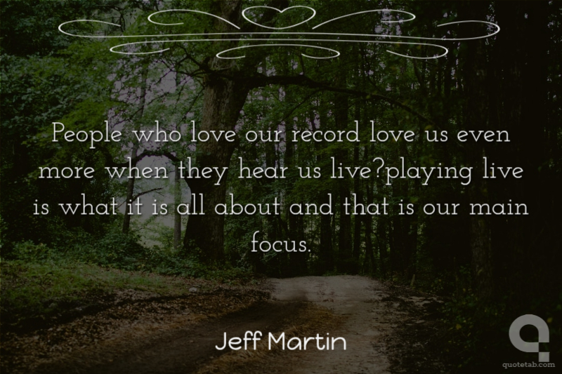 People who love our record love us even more when they hear us live?playing live is what it is all about and that is our main focus.