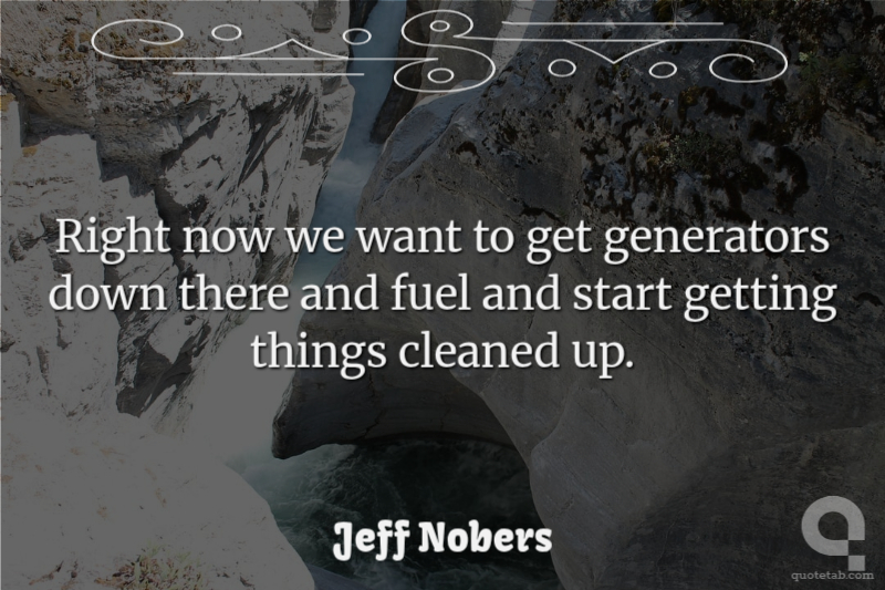 Right now we want to get generators down there and fuel and start getting things cleaned up.