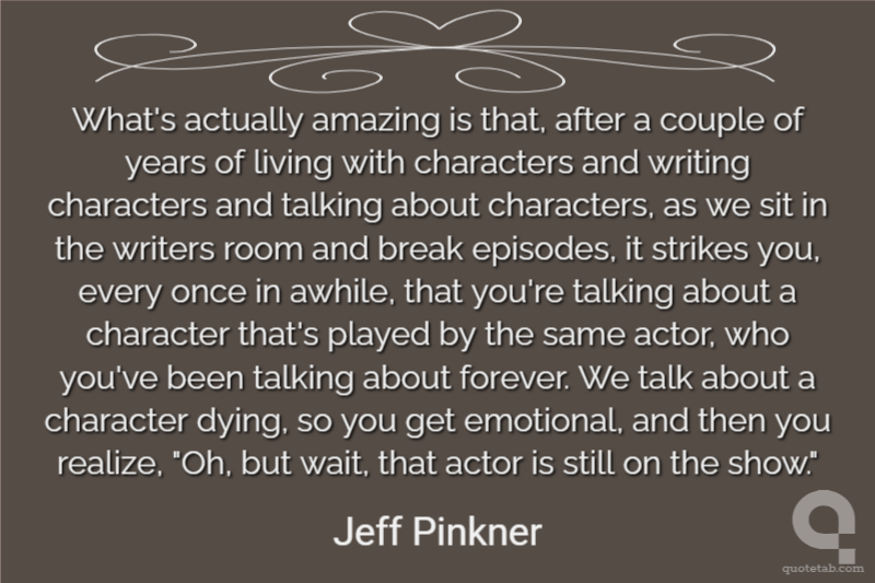 What's actually amazing is that, after a couple of years of living with characters and writing characters and talking about characters, as we sit in the writers room and break episodes, it strikes you, every once in awhile, that you're talking about a character that's played by the same actor, who you've been talking about forever. We talk about a character dying, so you get emotional, and then you realize, "Oh, but wait, that actor is still on the show."
