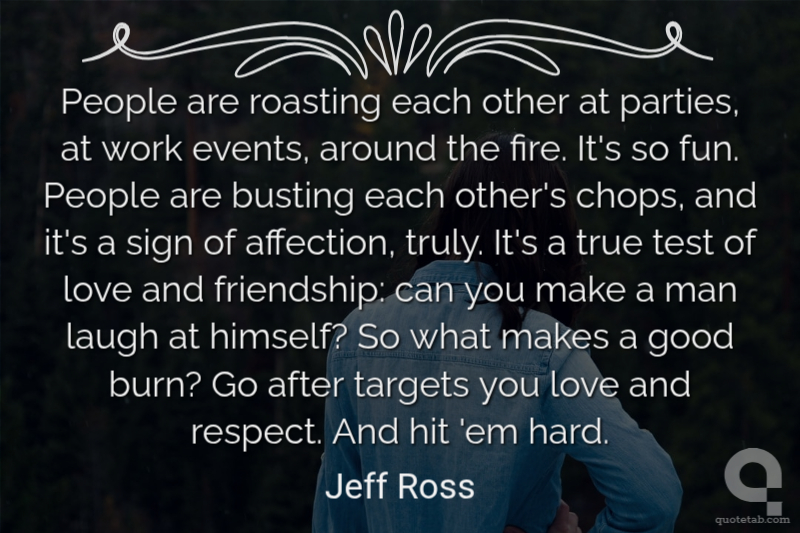 People are roasting each other at parties, at work events, around the fire. It's so fun. People are busting each other's chops, and it's a sign of affection, truly. It's a true test of love and friendship: can you make a man laugh at himself? So what makes a good burn? Go after targets you love and respect. And hit 'em hard.