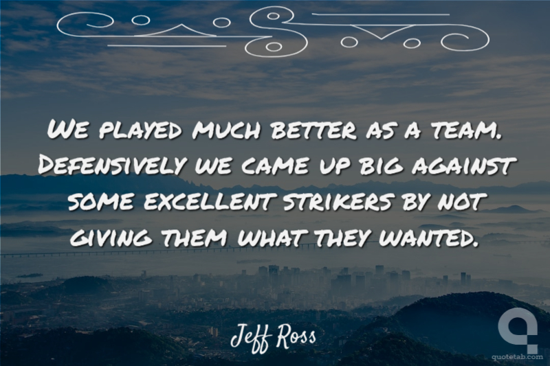 We played much better as a team. Defensively we came up big against some excellent strikers by not giving them what they wanted.