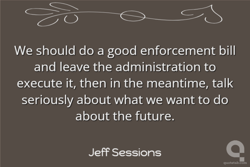 We should do a good enforcement bill and leave the administration to execute it, then in the meantime, talk seriously about what we want to do about the future.