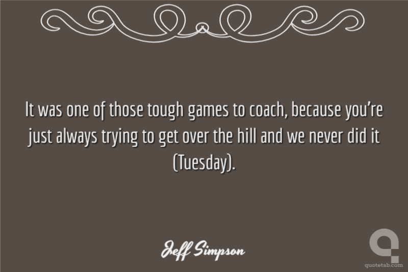 It was one of those tough games to coach, because you're just always trying to get over the hill and we never did it (Tuesday).