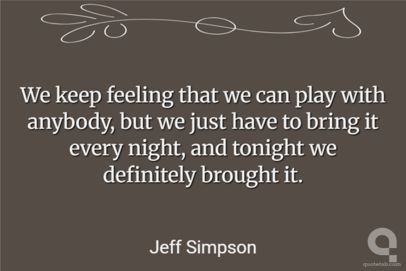 We keep feeling that we can play with anybody, but we just have to bring it every night, and tonight we definitely brought it.