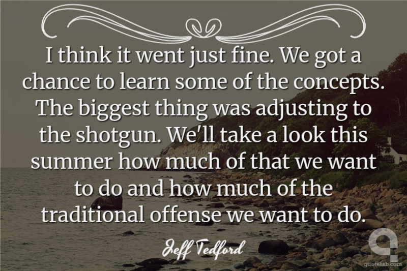 I think it went just fine. We got a chance to learn some of the concepts. The biggest thing was adjusting to the shotgun. We'll take a look this summer how much of that we want to do and how much of the traditional offense we want to do.