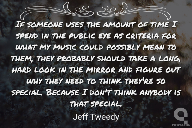 If someone uses the amount of time I spend in the public eye as criteria for what my music could possibly mean to them, they probably should take a long, hard look in the mirror and figure out why they need to think they're so special. Because I don't think anybody is that special.
