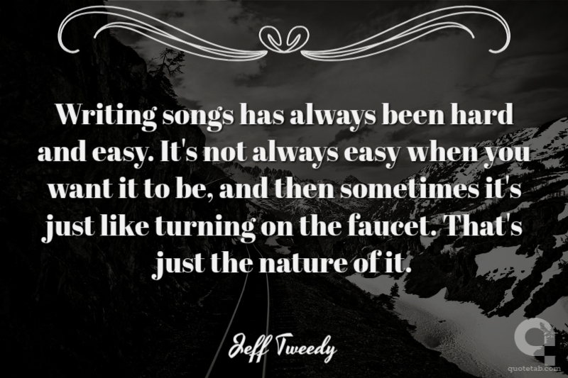 Writing songs has always been hard and easy. It's not always easy when you want it to be, and then sometimes it's just like turning on the faucet. That's just the nature of it.