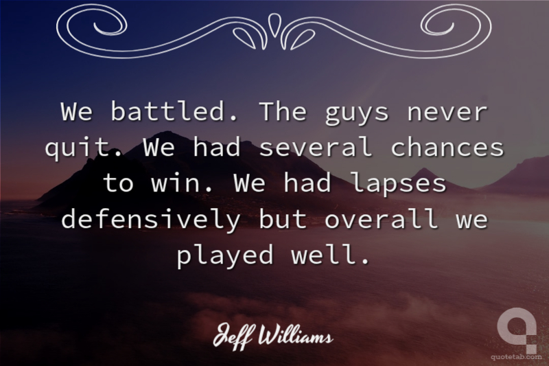 We battled. The guys never quit. We had several chances to win. We had lapses defensively but overall we played well.