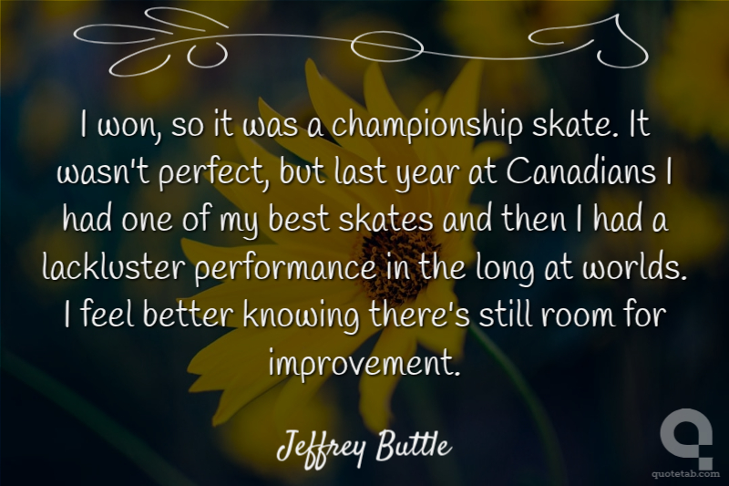 I won, so it was a championship skate. It wasn't perfect, but last year at Canadians I had one of my best skates and then I had a lackluster performance in the long at worlds. I feel better knowing there's still room for improvement.