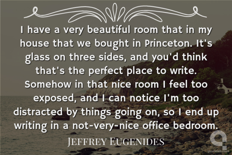 I have a very beautiful room that in my house that we bought in Princeton. It's glass on three sides, and you'd think that's the perfect place to write. Somehow in that nice room I feel too exposed, and I can notice I'm too distracted by things going on, so I end up writing in a not-very-nice office bedroom.
