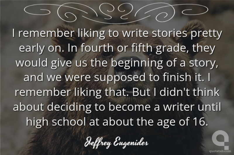 I remember liking to write stories pretty early on. In fourth or fifth grade, they would give us the beginning of a story, and we were supposed to finish it. I remember liking that. But I didn't think about deciding to become a writer until high school at about the age of 16.