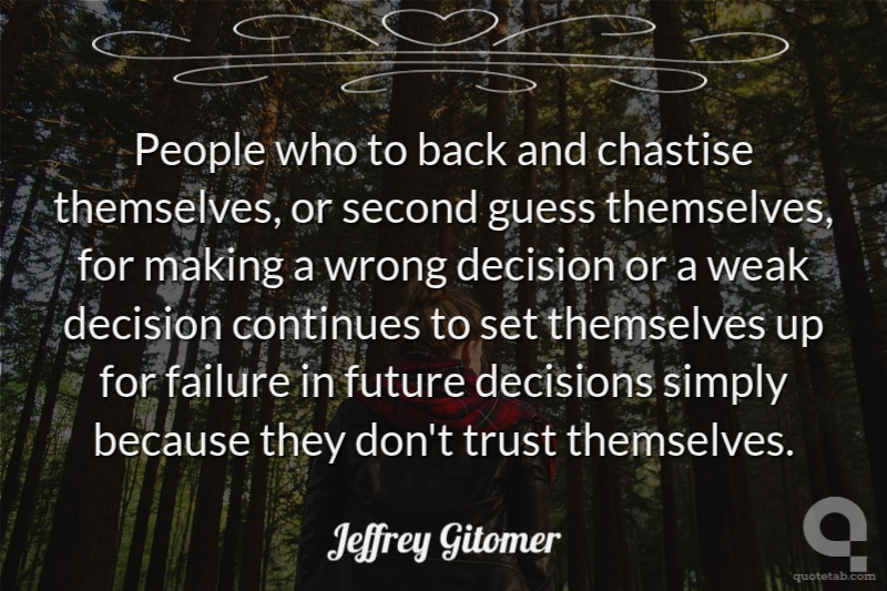 People who to back and chastise themselves, or second guess themselves, for making a wrong decision or a weak decision continues to set themselves up for failure in future decisions simply because they don't trust themselves.