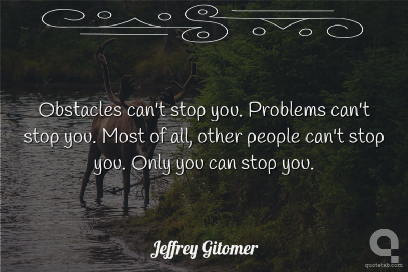 Obstacles can't stop you. Problems can't stop you. Most of all, other people can't stop you. Only you can stop you.