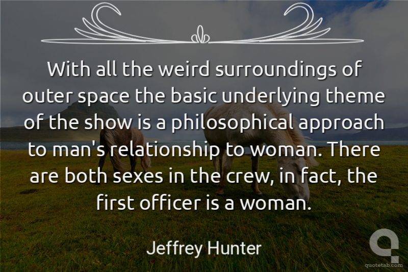 With all the weird surroundings of outer space the basic underlying theme of the show is a philosophical approach to man's relationship to woman. There are both sexes in the crew, in fact, the first officer is a woman.