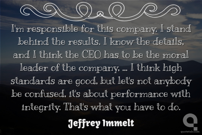 I'm responsible for this company. I stand behind the results. I know the details, and I think the CEO has to be the moral leader of the company, ... I think high standards are good, but let's not anybody be confused, it's about performance with integrity. That's what you have to do.