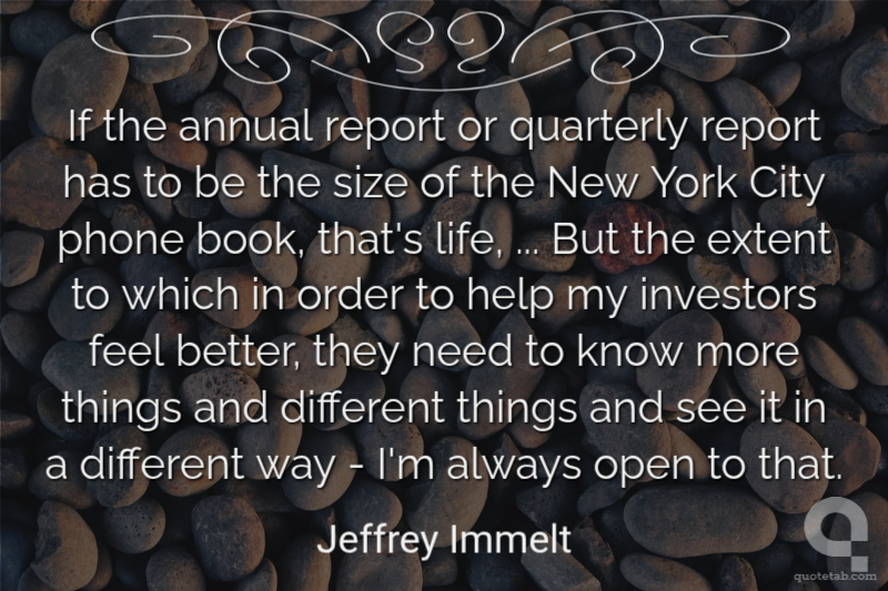 If the annual report or quarterly report has to be the size of the New York City phone book, that's life, ... But the extent to which in order to help my investors feel better, they need to know more things and different things and see it in a different way - I'm always open to that.