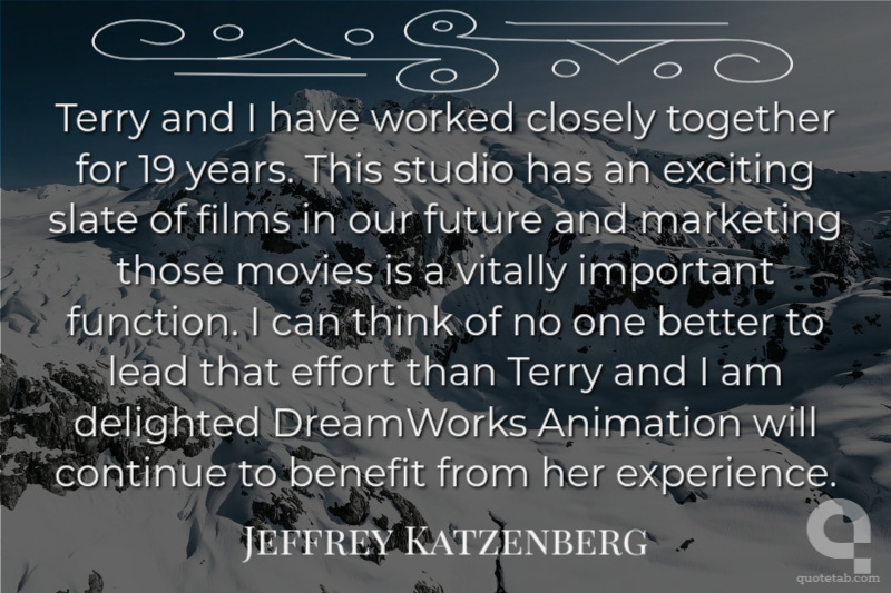 Terry and I have worked closely together for 19 years. This studio has an exciting slate of films in our future and marketing those movies is a vitally important function. I can think of no one better to lead that effort than Terry and I am delighted DreamWorks Animation will continue to benefit from her experience.