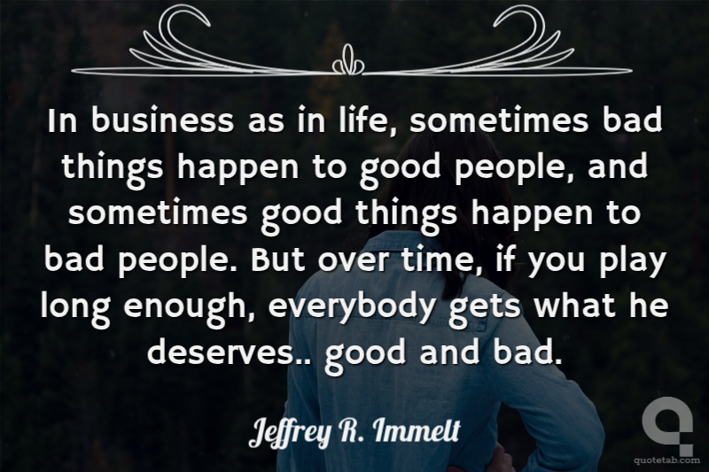 In business as in life, sometimes bad things happen to good people, and sometimes good things happen to bad people. But over time, if you play long enough, everybody gets what he deserves.. good and bad.