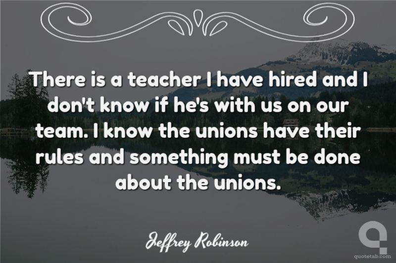 There is a teacher I have hired and I don't know if he's with us on our team. I know the unions have their rules and something must be done about the unions.