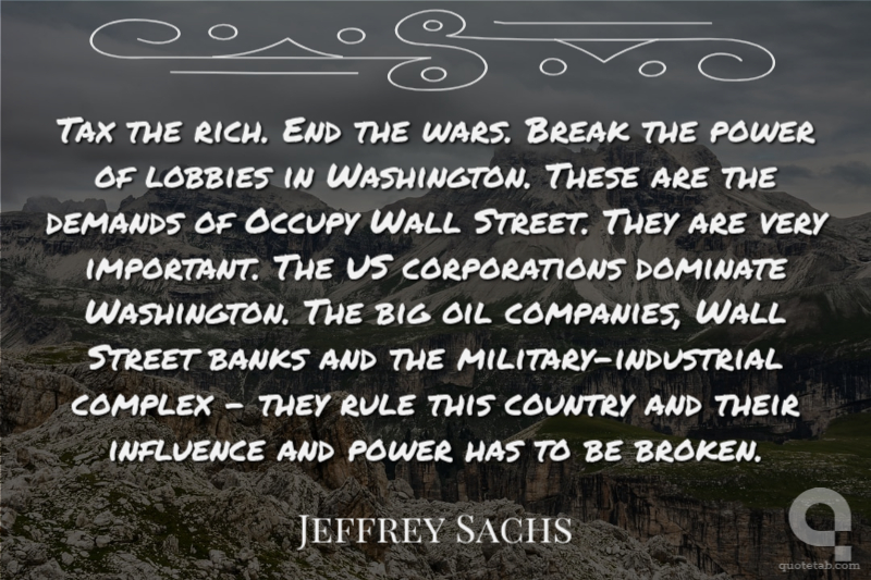 Tax the rich. End the wars. Break the power of lobbies in Washington. These are the demands of Occupy Wall Street. They are very important. The US corporations dominate Washington. The big oil companies, Wall Street banks and the military-industrial complex - they rule this country and their influence and power has to be broken.