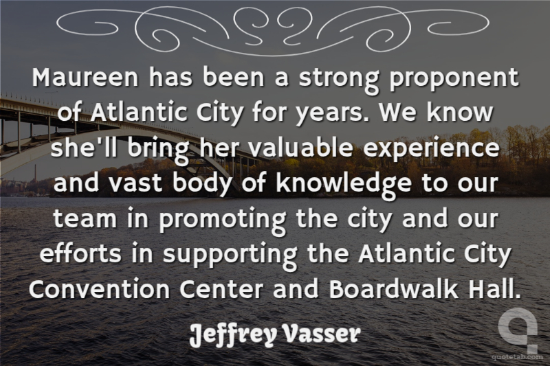 Maureen has been a strong proponent of Atlantic City for years. We know she'll bring her valuable experience and vast body of knowledge to our team in promoting the city and our efforts in supporting the Atlantic City Convention Center and Boardwalk Hall.
