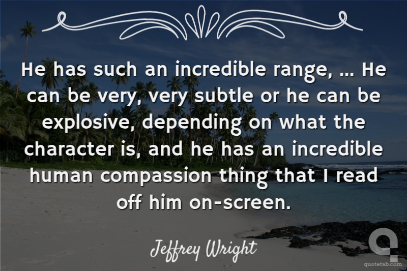 He has such an incredible range, ... He can be very, very subtle or he can be explosive, depending on what the character is, and he has an incredible human compassion thing that I read off him on-screen.
