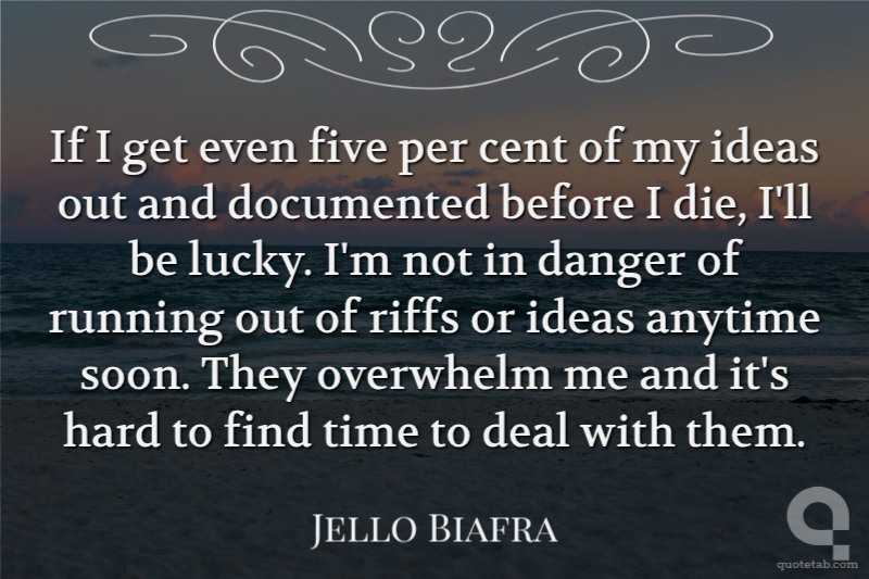 If I get even five per cent of my ideas out and documented before I die, I'll be lucky. I'm not in danger of running out of riffs or ideas anytime soon. They overwhelm me and it's hard to find time to deal with them.